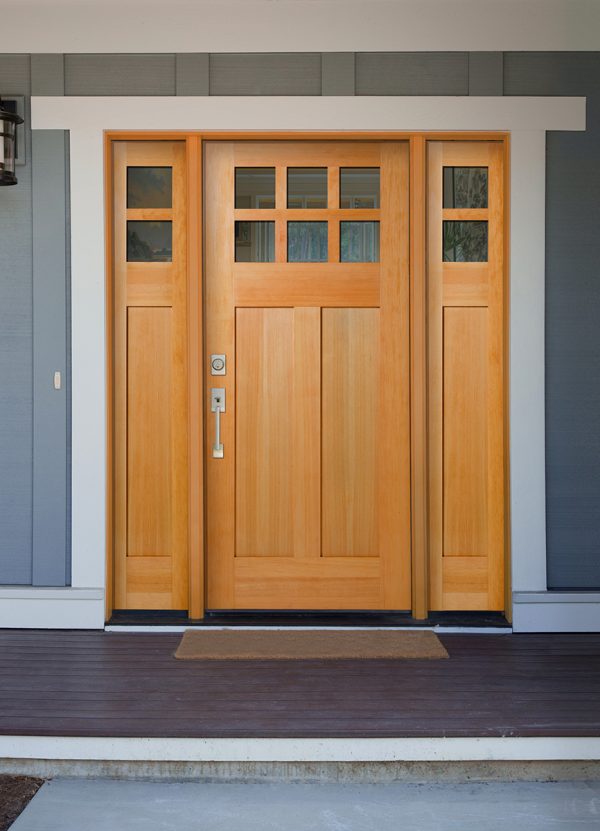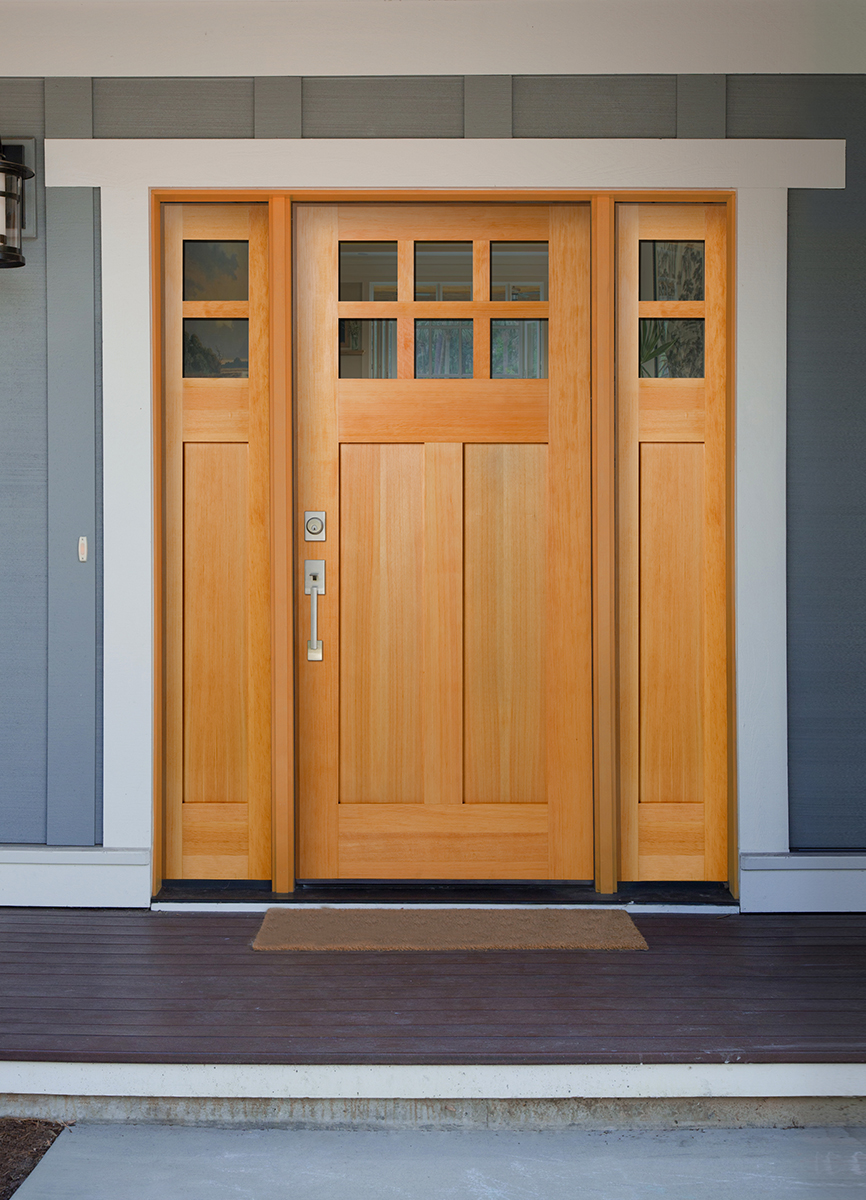 This Traditional-style home features a Heritage Wood Exterior Door, with a Craftsman Lite, 2-Panel door style and True Divided Lite glass.