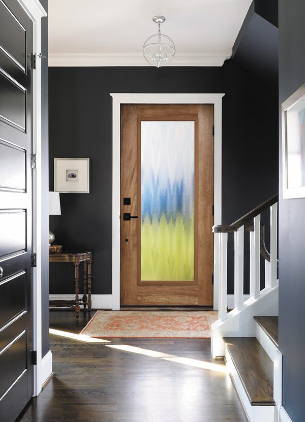 This Contemporary-style home features a Timbergrain Fiberglass Exterior Door, with a Full Lite door style and Chinchilla glass.